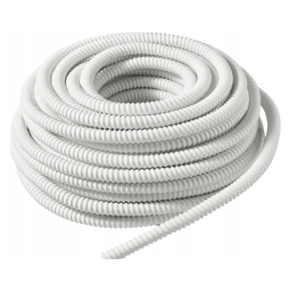 Špirálová hadica na odvod kondenzátu. Hladká vnútorná strana. Materiál PVC. Priemer je 20 mm. V balení 30 m.