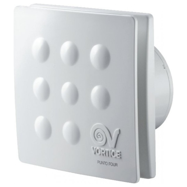 Malý axiálny ventilátor Vortice PUNTO FOUR so štýlovým panelom, vhodný pre akýkoľvek interiér. Prerušované a nepretržité vetranie kúpeľní, toaliet, kuchýň alebo verejných priestorov. Tichý ventilátor s nízkou spotrebou energie. Ochrana IPX4. Na pripojenie k potrubiu s priemerom 92,4 mm. Prietok vzduchu 65 m3/h.
